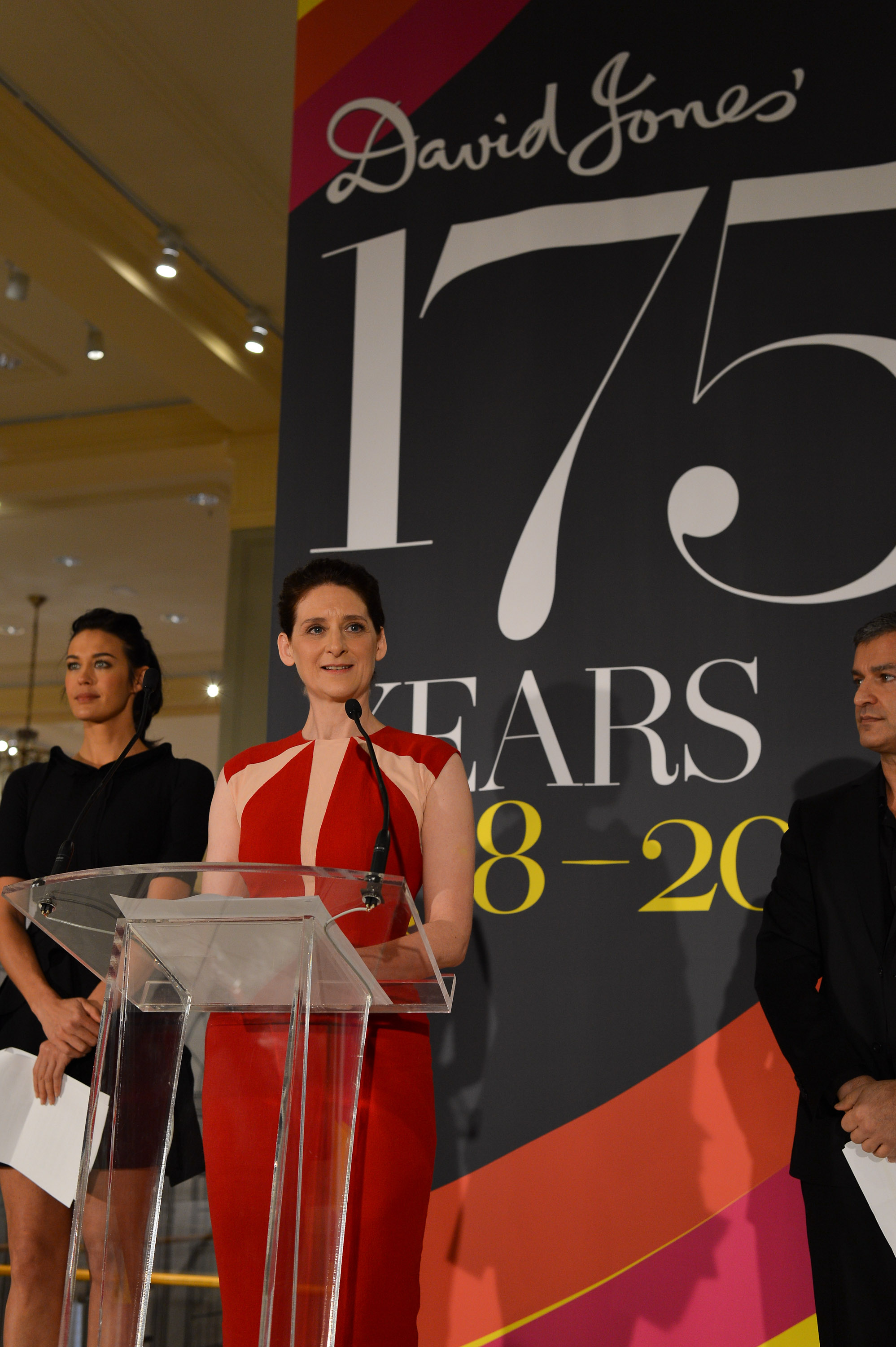 Wednesday May 22, 2013 Helen O’Neill appears on stage (pictured right) with David Jones CEO Paul Zahra and brand ambassador Megan Gale at David Jones’ Elizabeth Street store, Sydney, in front of 800 staff members.