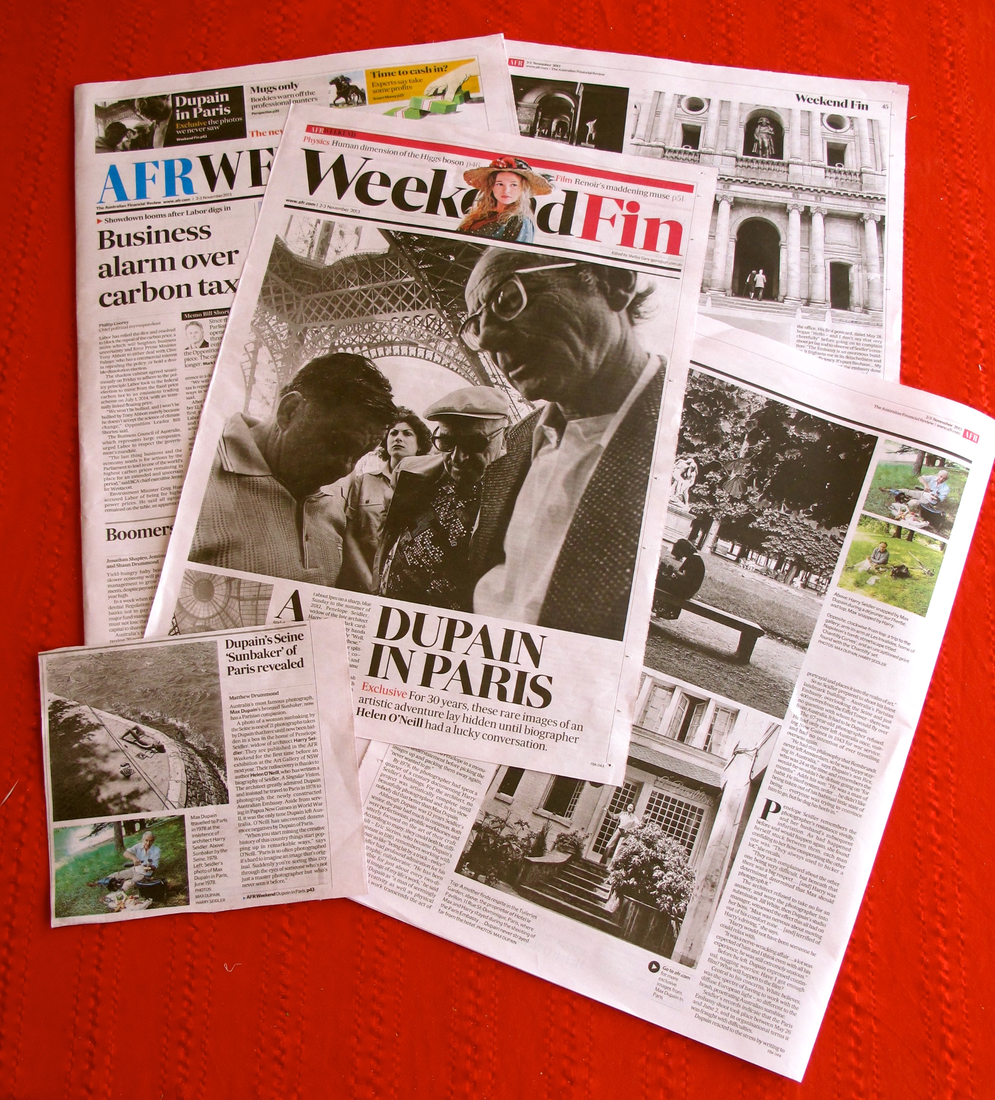 On the same day in The Australian Financial Review Helen O’Neill reveals how her research for A Singular Vision unearthed a unique portfolio of images by Max Dupain, Australia’s most famous photographer. The AFR runs the story as cover of its WeekendFin section and publishes a page three news story heralding O’Neill’s find. The ‘Paris Private’ Dupain portfolio is featured in A Singular Vision: Harry Seidler and will be exhibited at the Art Gallery of NSW in May 2014.